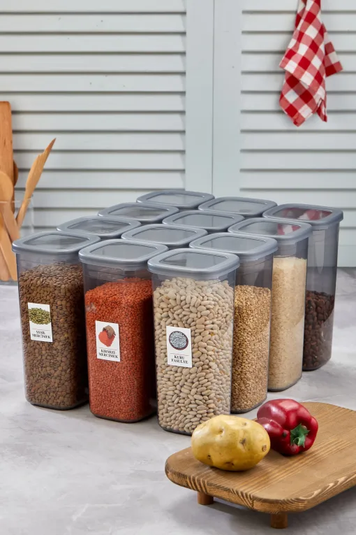Deze set van 12 voorraadpotten van Aryus met een inhoud van 1750 ml is ideaal voor het bewaren van droge voedingsmiddelen zoals noten, granen en peulvruchten. De potten zijn gemaakt van duurzaam materiaal en hebben een stofdichte sluiting om de versheid te behouden. De handige etiketten maken het eenvoudig om de inhoud te identificeren. Met deze ruime voorraadpotten kunt u uw keukenkastjes netjes en overzichtelijk houden. De potten zijn vaatwasserbestendig voor gemakkelijk schoonmaken. Geniet van een georganiseerde en opgeruimde keuken met deze praktische voorraadpotten.Het kan in de vaatwasser worden gewassen.